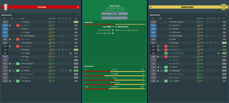 Sande also contributed to our equaliser in the 64th minute, threading a pinpoint pass into the box for Tafesse to calmly stroke in from a tight angle. Though an off-colour Trøen wasted an opportunity to complete the comeback just two minutes later, I was still happy to leave with a point that nearly wasn’t ours. That put us in a solid mid-table position of 8th after three games.