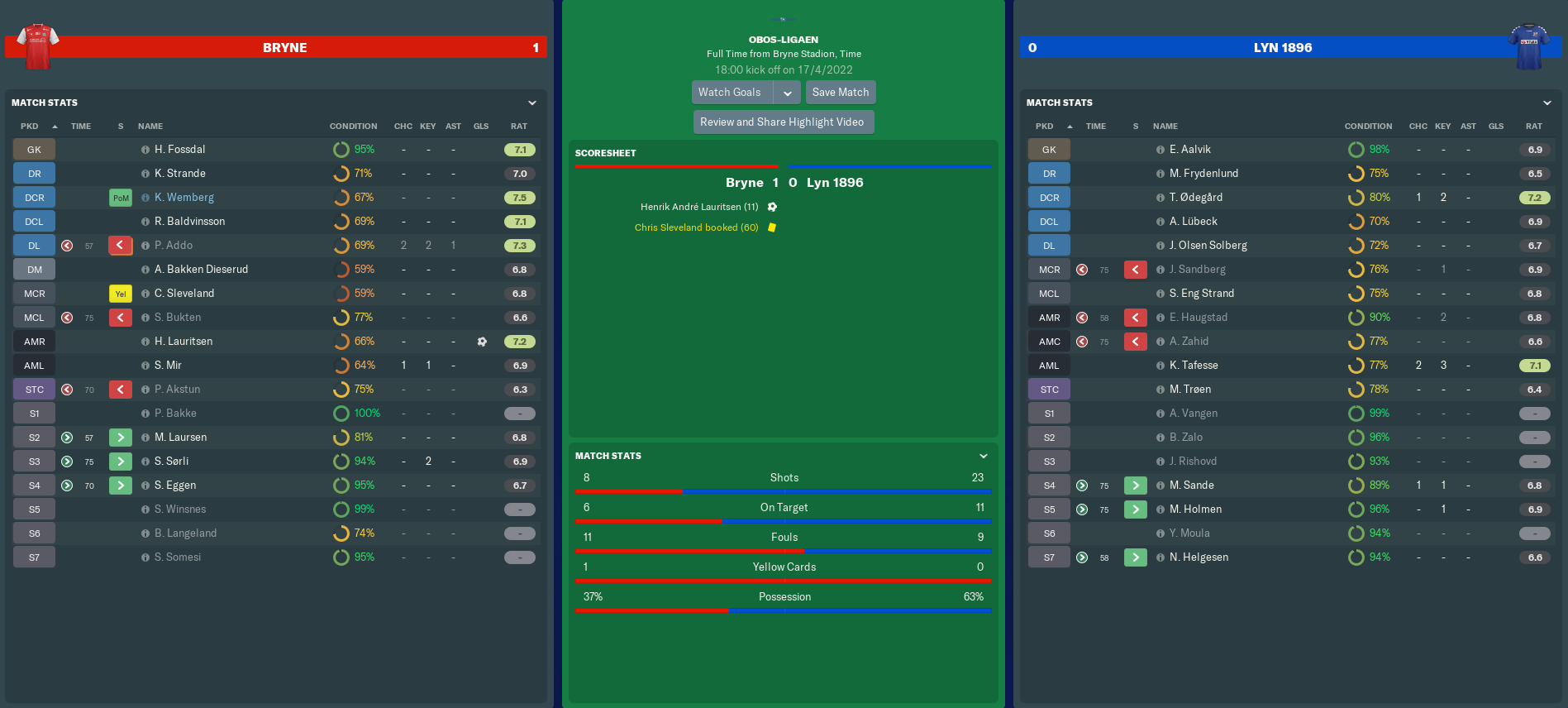 Jokke was very thankful to me for keeping faith in him after the Hødd defeat. While the veteran left-back’s early league performances had not been great, this felt like a turning point. I now expected us to see the real Joackim Olsen Solberg in subsequent games.