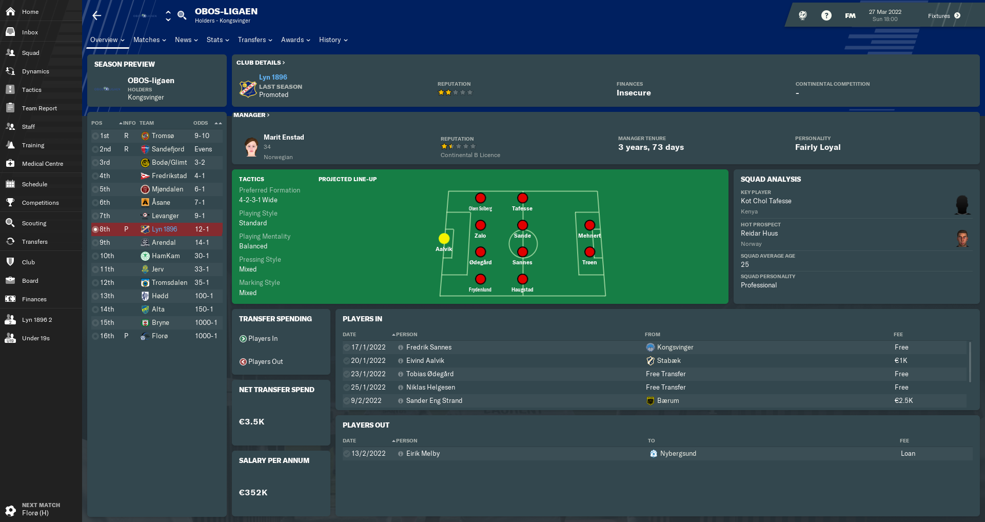 Now let’s get back to the league. Though the majority of 1. divisjon teams are semi-professional, seven clubs hold professional status and can give their players full-time contracts. Those teams will obviously be among the promotion favourites, so don’t expect us to be up there until we turn pro themselves. Because of the extra money we’ll get just by being in this division, I think we could be only a year or two from that next step.