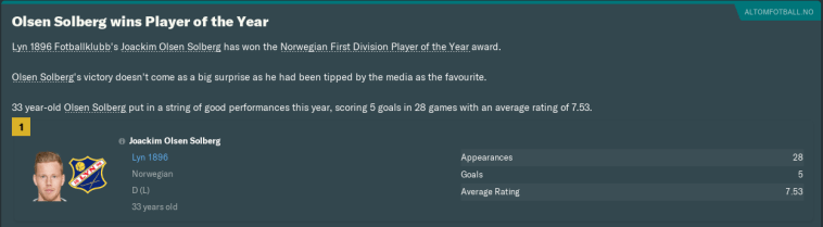 Olsen Solberg would go into those play-offs on a high after being named as the 1. divisjon’s Player of the Year. The left-back had enjoyed a sensational first season at Lyn, producing five goals and 15 assists – and maybe he wasn’t finished yet!