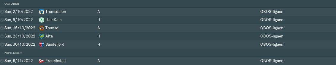 Here’s how we’ll finish off the season. We’ll make not one but TWO trips north, facing lowly Tromsdalen on 2 October and then 5th-placed Tromsø a fortnight later. Squeezed between that is a home tie against HamKam, who are stuck in the relegation zone.