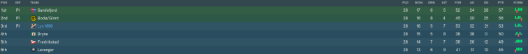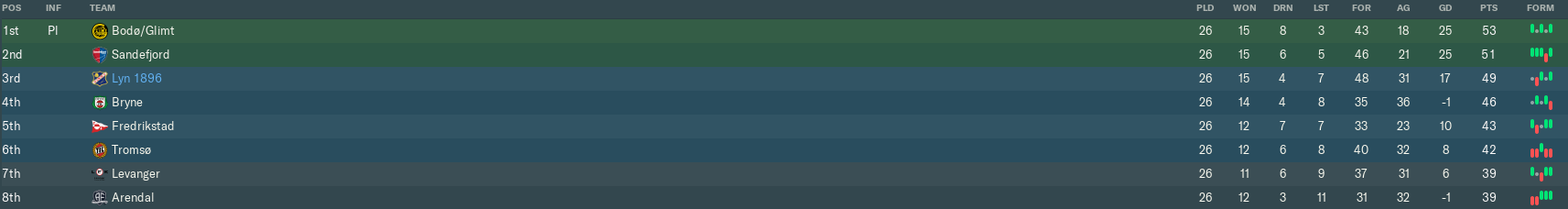 We also have a decent chance of automatic promotion – as long as we rediscover our best form and either Bodø/Glimt or Sandefjord stumble.