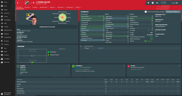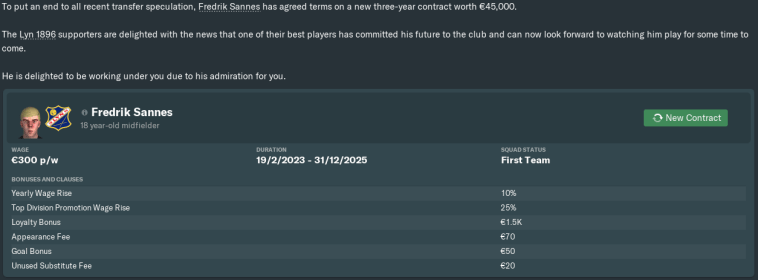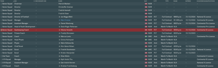 That was the only change I needed to make for the time being. Our coaching set-up apparently ranks in the top six of all 1. divisjon clubs in all categories, while our recruitment and medical teams are also pretty strong. [If it ain’t broke, don’t fix it, right?]