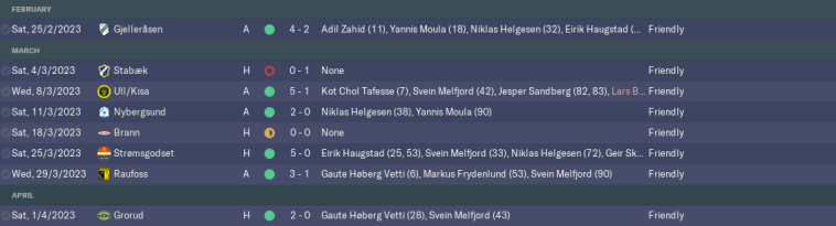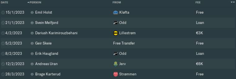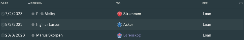 Meanwhile, I allowed three of our younger players to go out on loan. Promising centre-half Eirik Melby was still some way off first-team level, so he’s gone back on loan to the 2. divisjon, this time joining Strømmen for the year.
