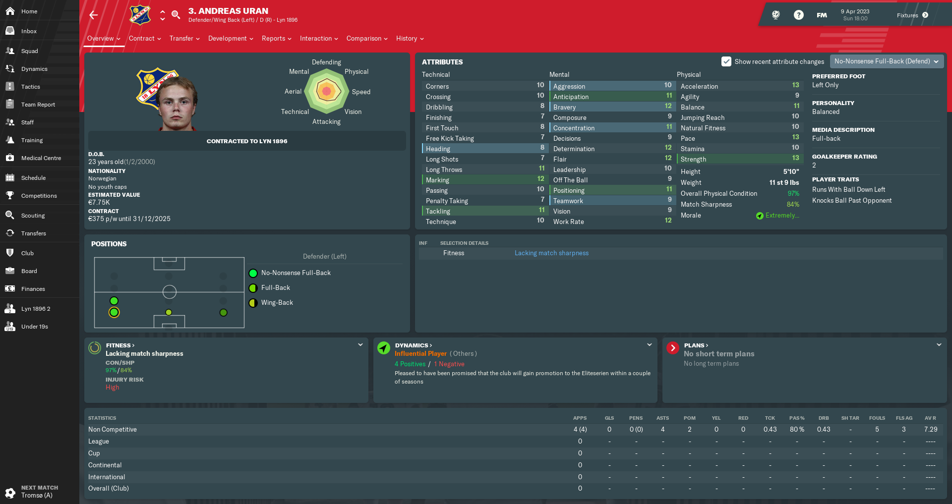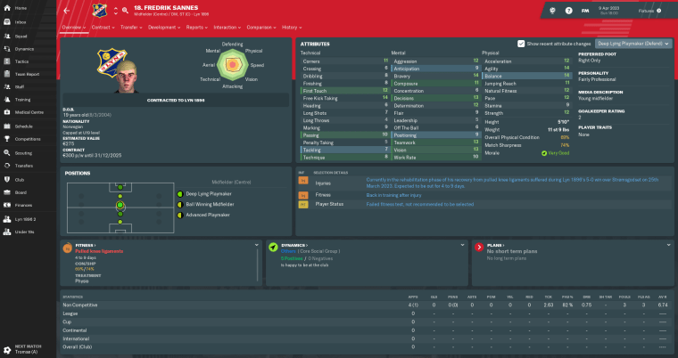 Finally, I made room in my squad for a natural left-winger to arrive late in the transfer window. 20-year-old Brage Karterud joined on a free transfer from hometown club Strømmen, where his technique and explosiveness had already caught the eyes of several reputable teams.