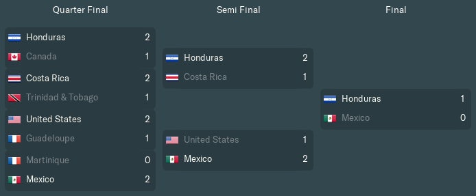 Mexico beat Canada to the CONCACAF Gold Cup in 2019 – so far, so unsurprising. Then Jamaica became the tournament’s first champions from outside North America in 2021, with Shamar Nicholson’s double inflicting another Final defeat on Canada. An arguably bigger surprise came two years later [above], when Mexico were edged out by Honduras.