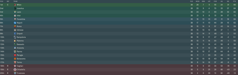 | 2019/2020 | 1. Juventus 2. Milan 3. Inter |