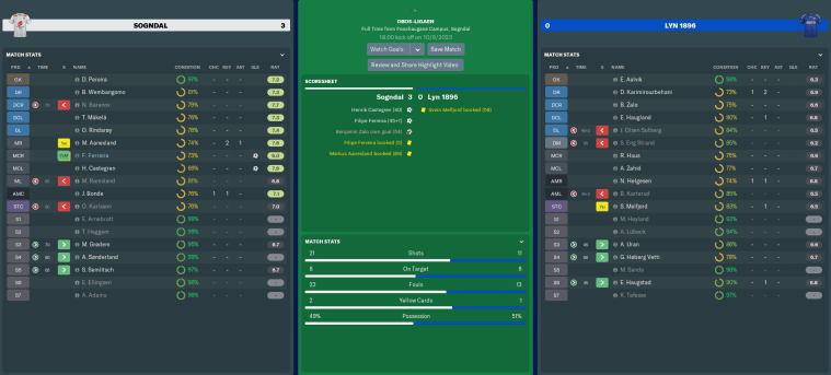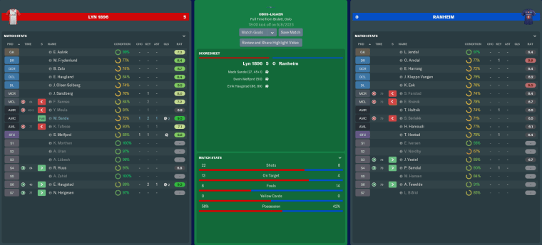 And before I forget… Sarpsborg tried to sign both Helgesen and Frydenlund on deadline day for pitiful money, which I obviously rejected. Niklas and Markus were both disappointed at not being allowed to discuss terms, but Anders and I convinced them to stay here. And it just so happened they would be going to Sarpsborg in the weekend anyway…