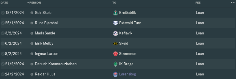 Centre-back Eirik Melby (now aged 20) agreed to a third year out on loan. Having spent the previous two years building up his experience in the 2. divisjon, he’s now moved up a division and joined Skeid. They conceded 61 goals in 30 league games last year, so I’m expecting Eirik to be a busy man.