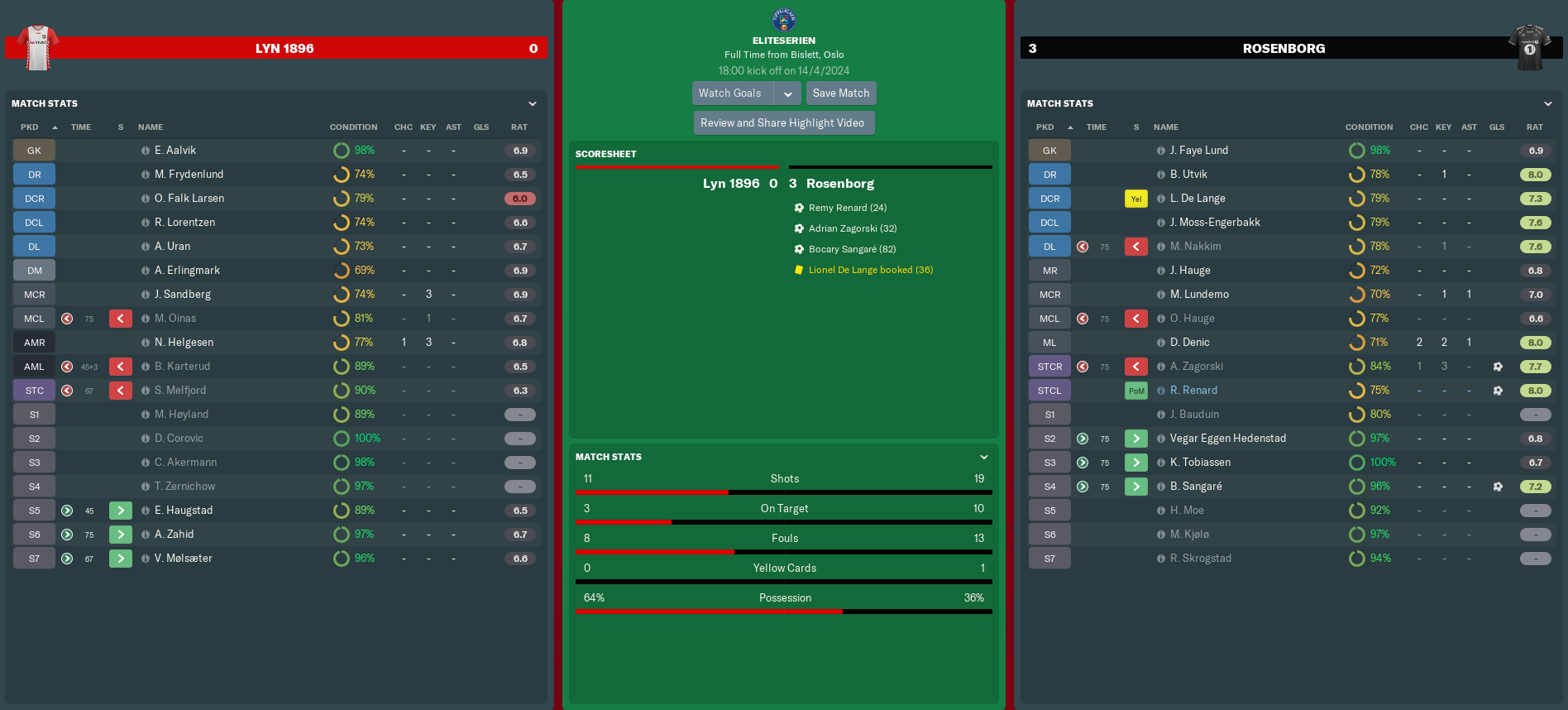 LYN 1896 vs ROSENBORG (Eliteserien – Match 6)