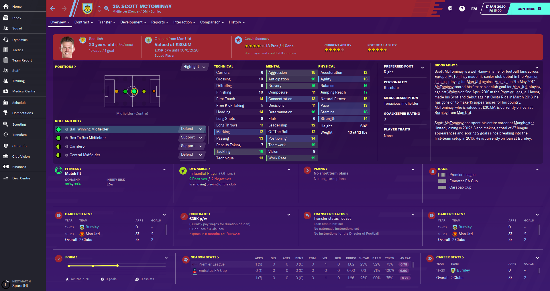 Another player who departed Turf Moor early in the new year was Danny Drinkwater. Chelsea refused to extend the England midfielder’s half-season loan, and I didn’t fancy paying him £125,000 per week to sign him permanently for £12million. There were far cheaper options on the market who offered better value for money, which I’ll get to later.