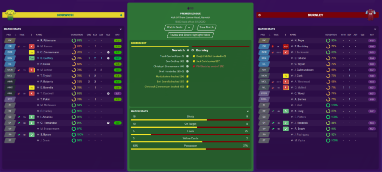 Following defeats in my first two matches as Clarets boss, I made some changes to our defence for the visit to 14th-placed Norwich. Our erratic captain Ben Mee handed the armband to midfielder Jack Cork, with Ben Gibson replacing him at centre-half. Meanwhile, 34-year-old Phil Bardsley came in at right-back to replace a tired Matt Lowton.