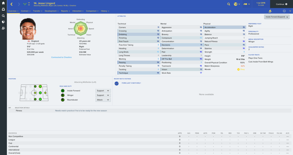 The last few years have seen Lingard steadily emerge as an attacking midfielder of real promise. What the Manchester United youth product lacks in height, he more than makes up for in technical ability.