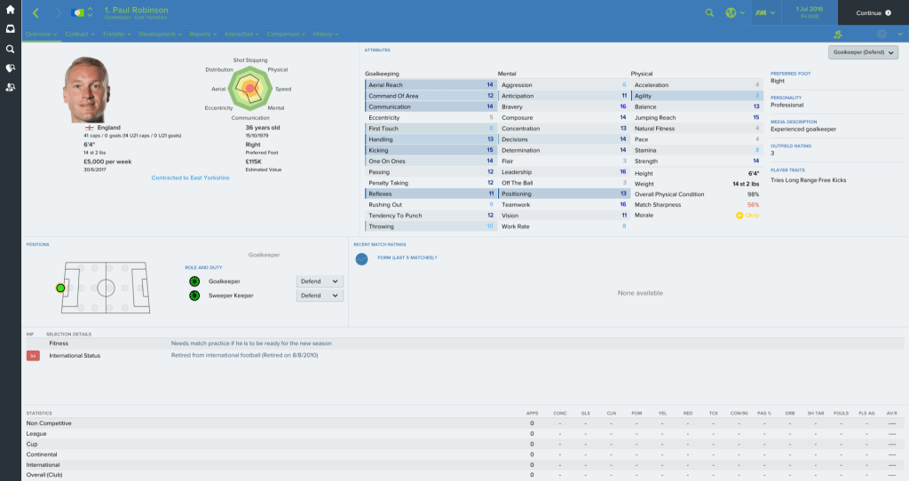 After over 350 Premier League games, Robinson is a goalkeeper in the autumn of his career. Though one miskick against Croatia defined his England career, he’s generally comfortable with the ball at his feet – or in his safe hands.