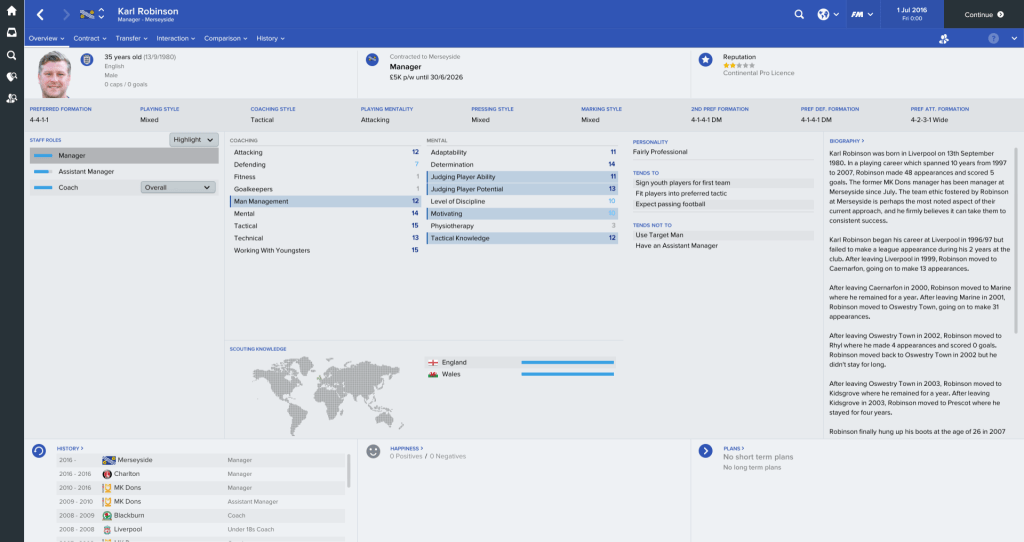 Though only 35, Robinson already has six years of managerial experience with Milton Keynes and Charlton under his belt. An advocate of youth development, he expects his teams to play attractive passing football at all times.