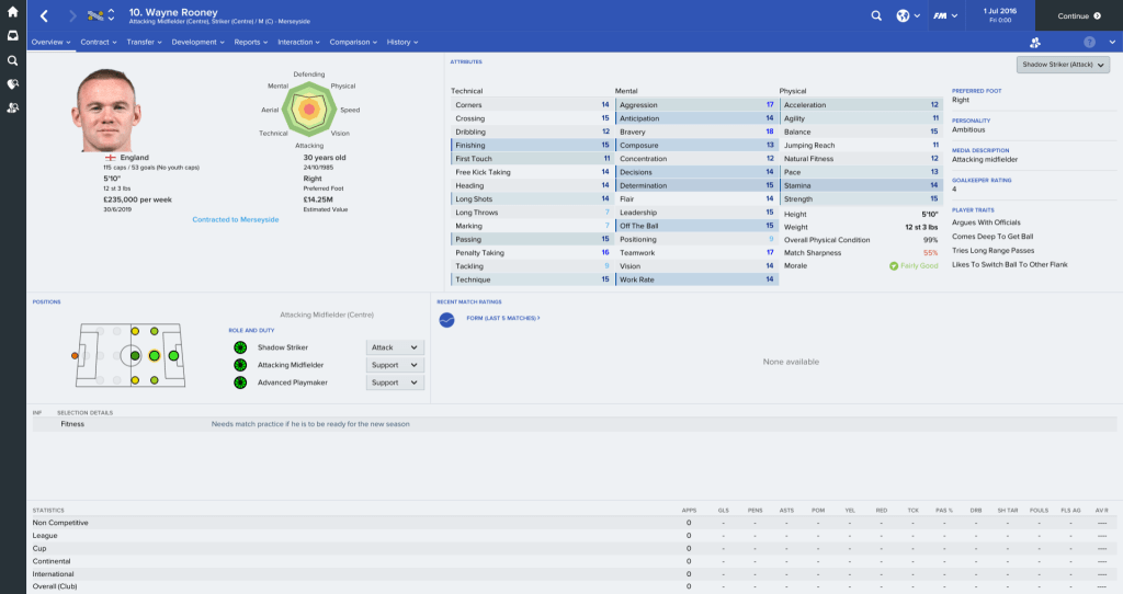 Arguably the greatest English footballer of his generation, Rooney is the Three Lions’ all-time top scorer. While not quite the same powerhouse who netted nearly 250 goals for Manchester United, he’s reinvented himself as a shadow striker.