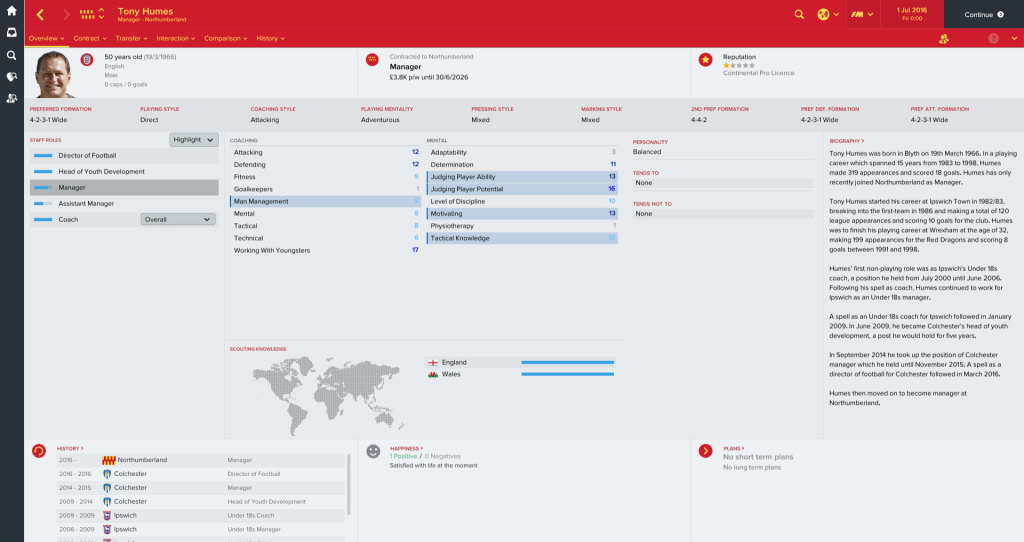 Humes was born in Blyth, but he was made in East Anglia, playing 120 league games for Ipswich before managing Colchester’s youth academy and later first-team. One of his coaches is Ashes-winning former England cricketer Steve Harmison.