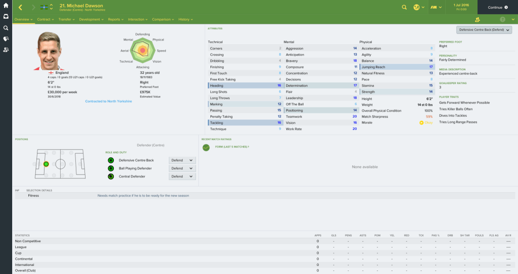 In spite of Dawson’s creaking legs, the erstwhile England and Tottenham centre-back is still going strong as he enters his mid-30s. You likely won’t find anyone in this North Yorkshire team who works harder or is more selfless.