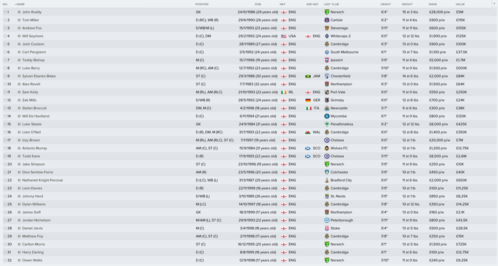 Cambridgeshire are perhaps strongest in defence, where they have some well-built stoppers and a couple of handy goalkeepers. Things don’t look quite so rosy in attack, with their biggest scoring threats having perhaps peaked. There are some exciting young talents in midfield and on the wings, though, so don’t discount them.