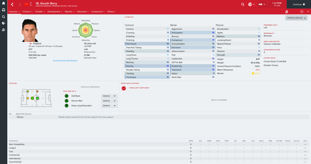 Only two players have made more Premier League appearances than former Aston Villa, Manchester City and Everton star Barry. A pivotal link between defence and midfield, he can calmly dictate the tempo of matches.