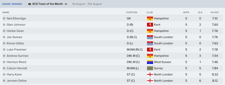 MANAGER OF THE MONTH: Gareth Southgate (West Sussex).