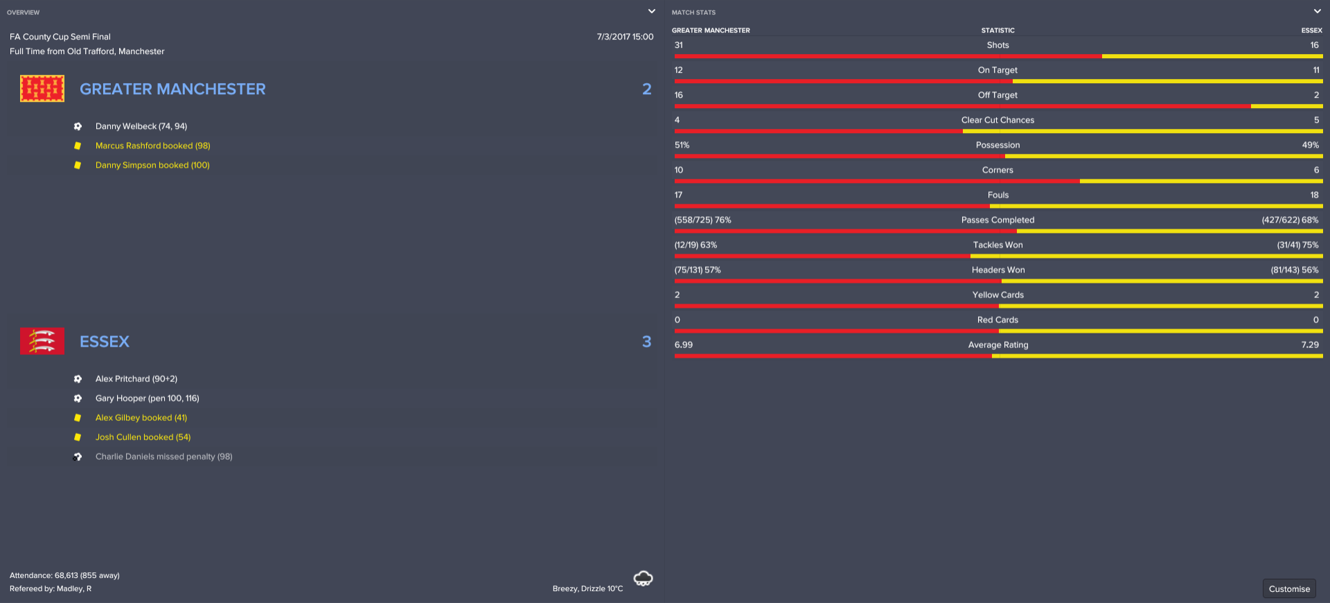 The other Semi was likely to be even more competitive. Greater Manchester and Essex were the dominant forces in their respective divisions, boasting frontlines that were feared across the country. What would happen when TWO unstoppable forces collided?