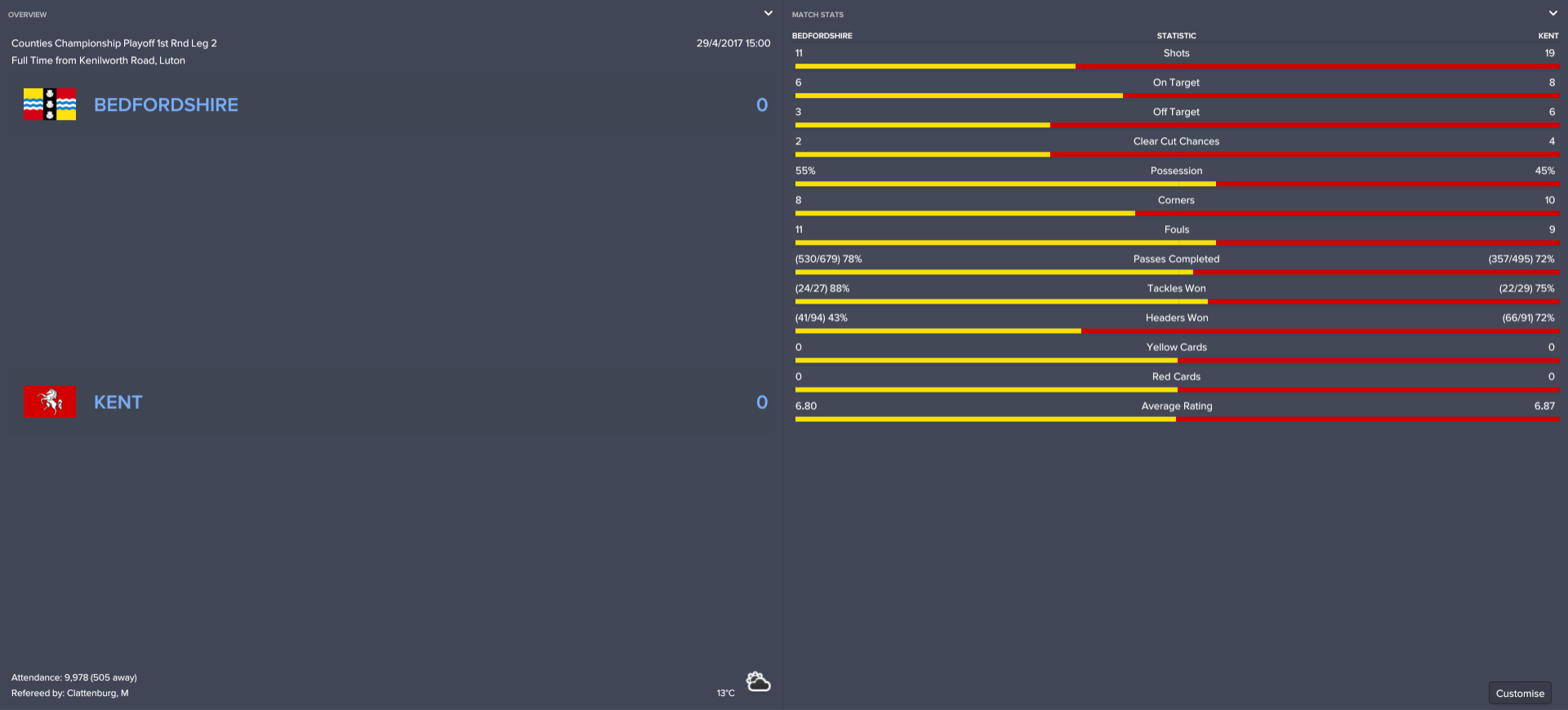 Try as they might, though, Kent just could not break the deadlock on the day, even after throwing Conor Washington and John Akinde on from the bench. The Luton faithful celebrated at full-time as Bedfordshire – seen as little more than also-rans in pre-season – moved a step closer towards becoming County Champions!