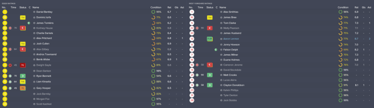 Hayden’s neck injury in the Play-Off Final ruled him out of this match for Essex, whose right-back Jenkinson ruptured his Achilles during a midweek training session. Gilbey and Hause were promoted to the starting XI in their places.