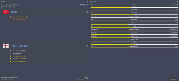 It’s 20 May 2017, and after a gruelling 50-match season, it has come down to this for both Essex and North London. One of those teams is about to be crowned Counties Championship winners at Wembley Stadium.