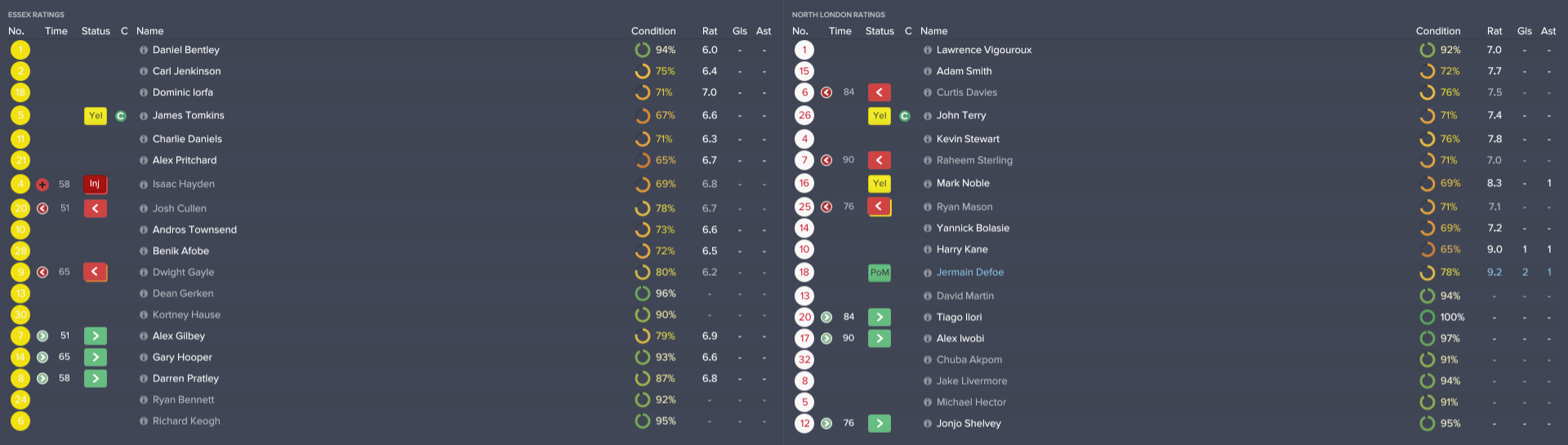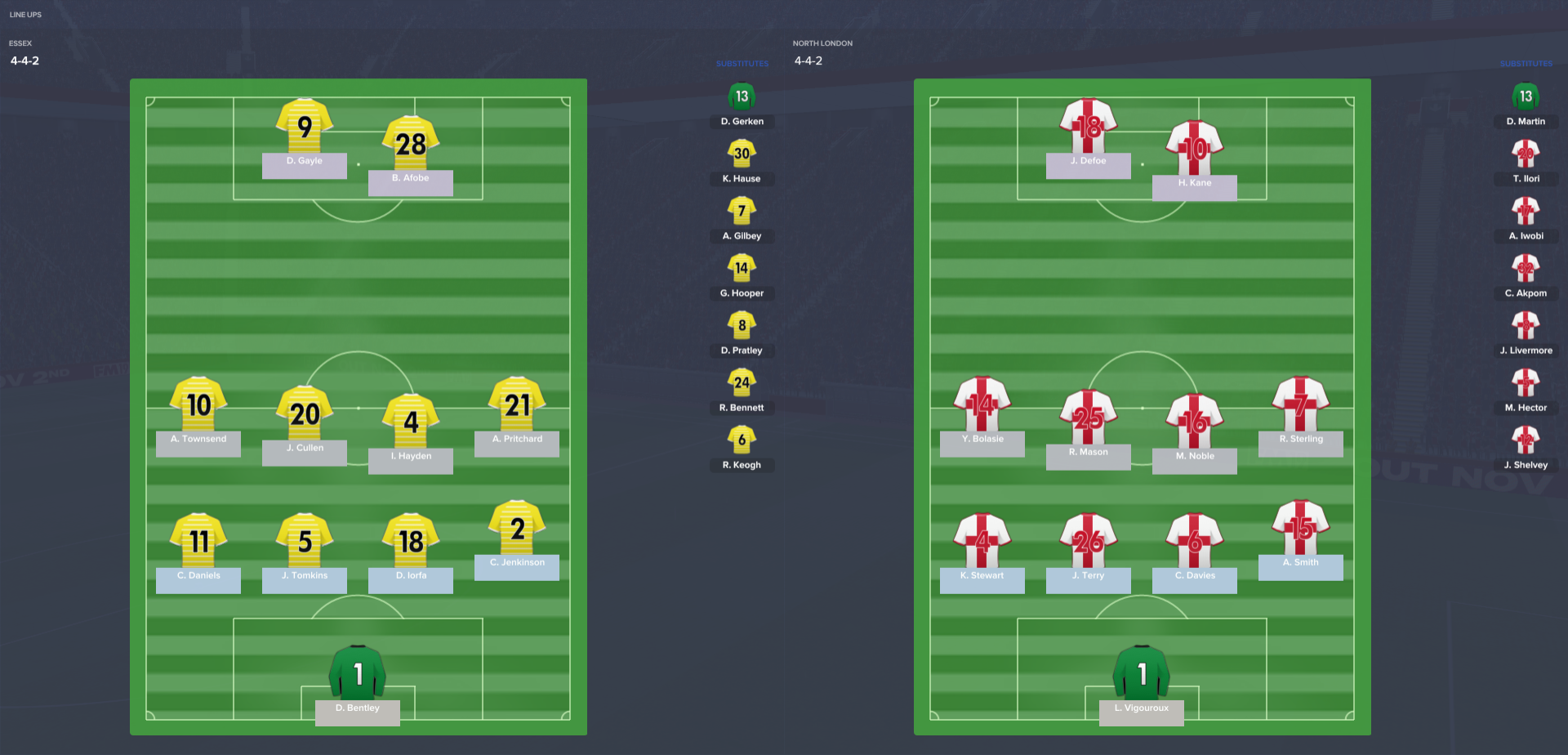 North London’s starting XI remained unchanged from that which had finished Staffordshire off in the second leg of their Semi Final. That meant their 76-goal strike partnership of Harry Kane and Jermain Defoe remained intact, while Kevin Stewart – who’d missed just one league game – stayed at left-back.
