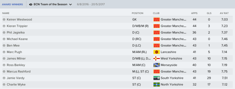 | Kieran Trippier | Greater Manchester | 7.60 |