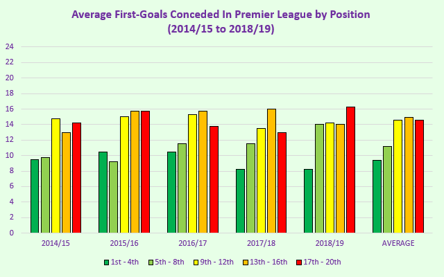 You can see straight away that, yes, the leading teams do concede far fewer first-goals than the others. It’s also quite easy to see that top-half teams fare better than bottom-half sides.