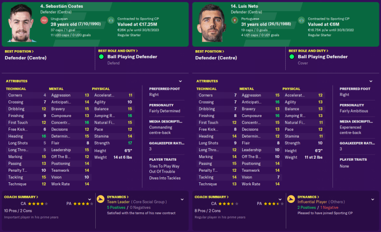 We now come to our defence, which our Uruguayan captain Sebastián Coates is right at the heart of. The former Liverpool and Sunderland stopper has been a commanding, strong and consistent presence for Sporting since arriving in 2016. Less encouraging, he has a tendency to dive into tackles, which is a big minus for me when it comes to centre-backs.