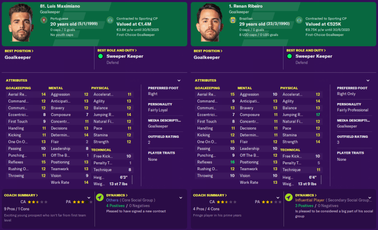 Our third goalie is another young prospect in Diogo Sousa. Though his potential isn’t quite as high as Maximiano’s, Sousa has great aerial reach. He’ll probably go out on loan in the second half of the season for some extra senior experience.