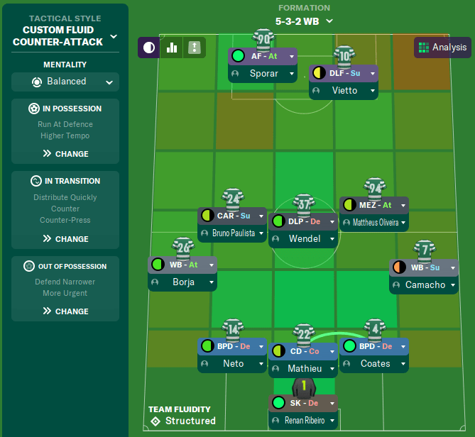 I also trialled a 3-5-2 counter-attacking tactic during pre-season, with mixed results. That allows us to really solidify the defence and push our wing-backs further forward, though it sacrifices our wide attackers. If the 4-3-3 options don’t work, I might switch to that ‘Plan C’… but don’t expect me to bring it out very often, if at all.