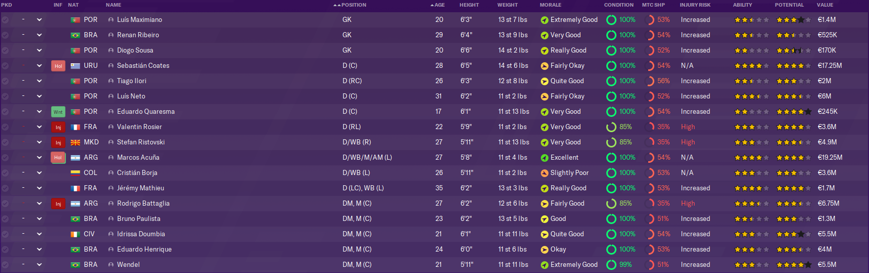We also have the very exciting Eduardo Quaresma available to us. Even at 17, he has the resilience and tactical smarts to do a decent job in the Primeira Liga. Some of the top English clubs are already keeping tabs on him, though, so we’ll need to stave them off.