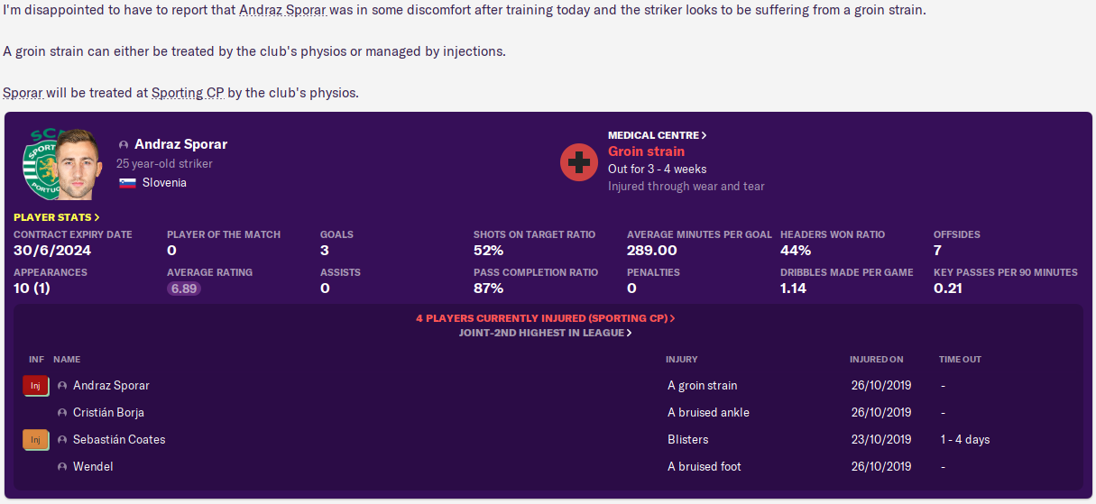 Please come back on Friday for Part 4, where we’ll finish off 2019 and then roll straight into the new year – and the opening of a new transfer window! Will I inject some fresh blood into Sporting or stick with what I already have?