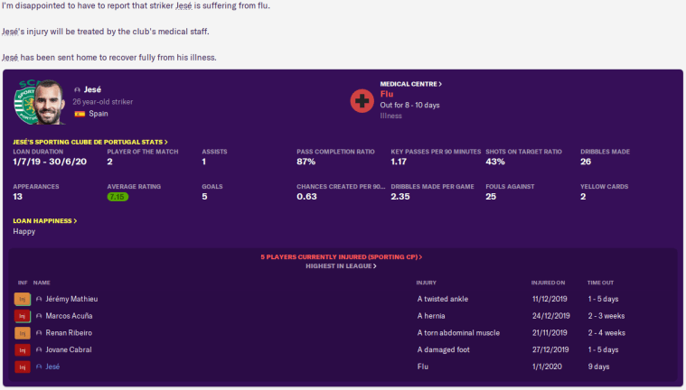 My new Football Manager 2020 save with Sporting CP has gone pretty well so far. Mind you, there have been a few hiccups along the way, not least because the players are still getting used to the physical demands needed to regularly and effectively counter-press.