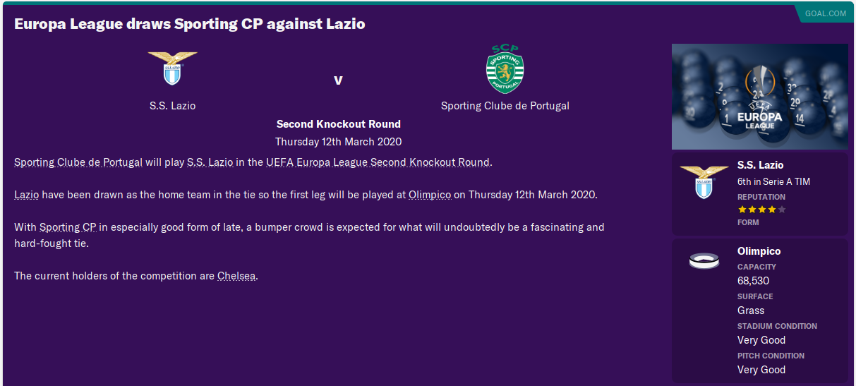 And there’s yet more proof that goalkeeper ratings in Football Manager 2020 are broken. Maximiano made FIFTEEN saves against Lazio, including some under extreme pressure late on, yet only scored a 7.0! What did Luís have to do to be named ‘man of the match’ – create a working coronavirus vaccine?!