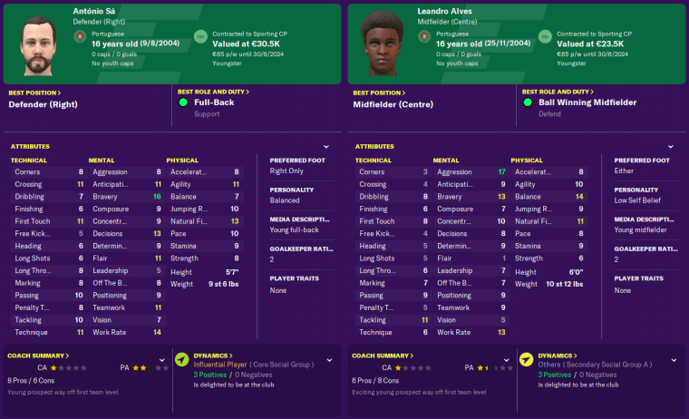Right-back António Sa is the brightest prospect. He’s brave and works hard, sure, but his physicals are a bit low, and he needs a better personality. I dunno… let’s see how he is in a few years’ time?