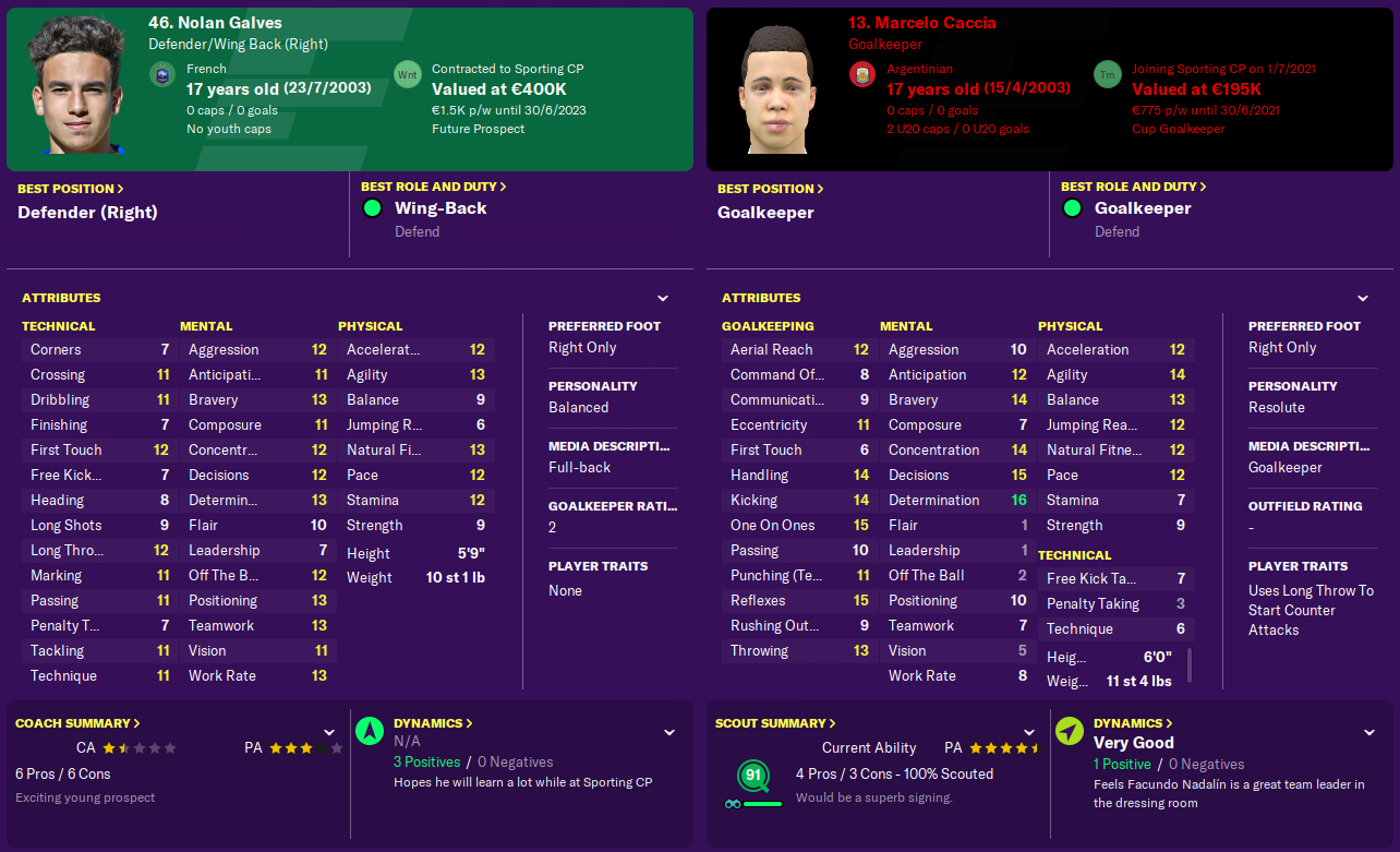 I’ve been tracking French right-back Nolan Galves for a while, and I finally prised him from Sochaux for €550,000. The 17-year-old has well-rounded attributes in all the right places and has the potential to be significantly better than his countryman Rosier. Nolan immediately goes into our Under-23s squad and will probably be loaned out next season.
