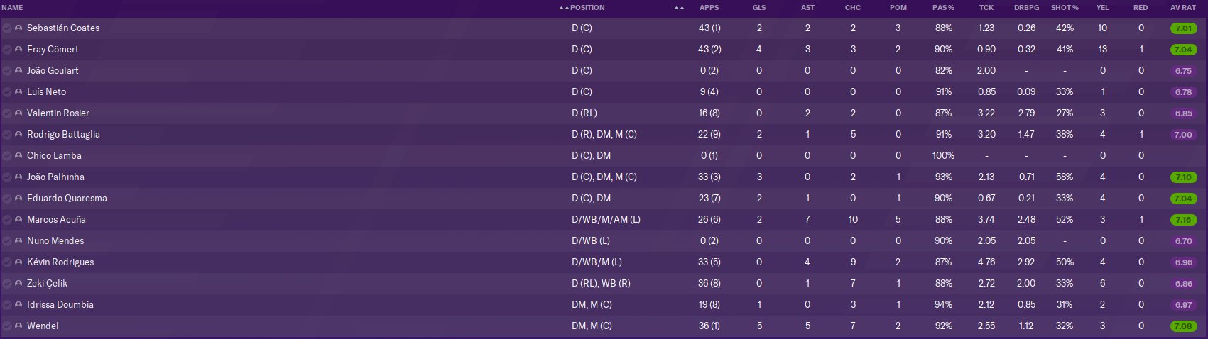 Midfield wonderkid Reinier also did well, considering he was a bit of a panic loan from Real Madrid on the last day of the summer transfer window. The 19-year-old lit up the Alvalade at times, recording an average rating of 7.26 across 16 league games. That AR would have been a lot higher if Reinier had been as reliable at the beginning and the end of his loan spell as he had been during the winter months.