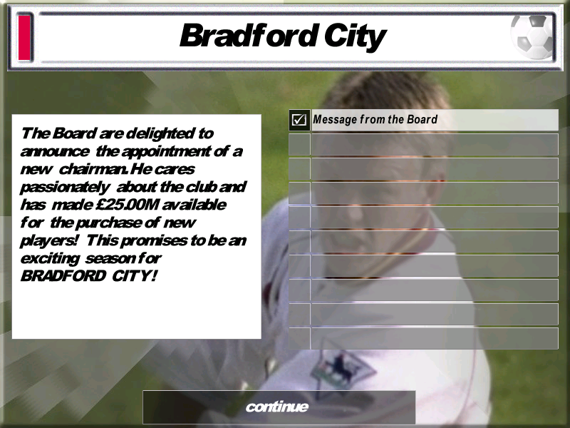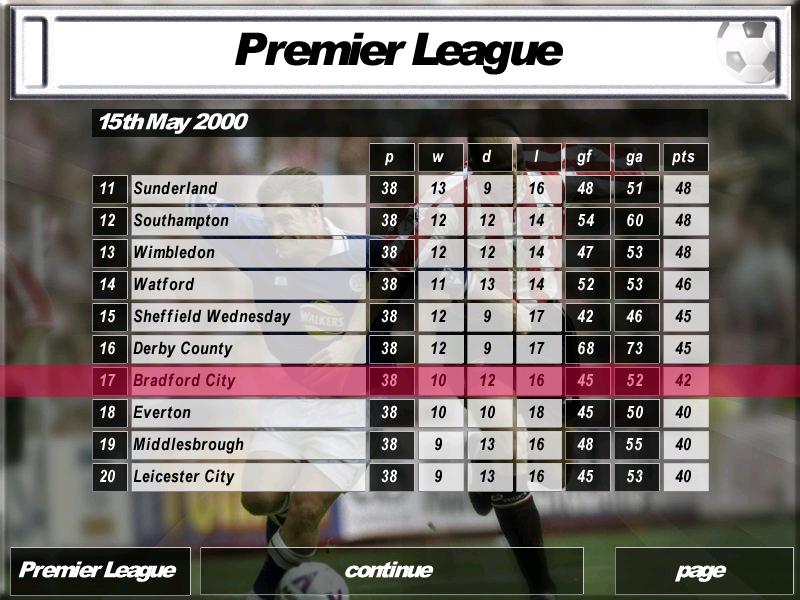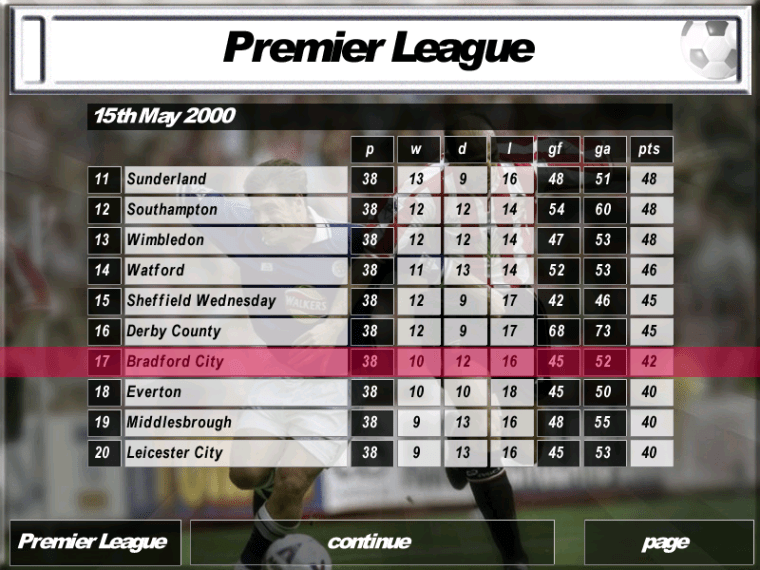 That being said, it wasn’t until 20 years later that I decided to revisit this game. On a nostalgic whim, I bought a second-hand copy on Amazon and spent a week of my summer reliving those memories. To repay them for being shafted in the demo all those years ago, I took charge of Bradford, who were entering the Premiership for the first time.