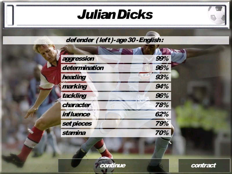 According to this game, Marian Pahars and a 35-year-old Mark Hughes are two of the deadliest strikers in the Premier League (Southampton bias?). At my beloved Arsenal, Gilles Grimandi is seemingly a world-class right-back, and the Gunners also have a new pacey young striker named Thierry Henri.