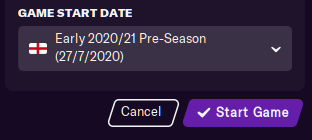 Also remember that the summer leagues (such as those in Brazil and the Republic of Ireland) do not begin until 2021, and thus will not be playable until then. You will be notified about this if have any of those leagues loaded and your start date is set several months before they become playable.