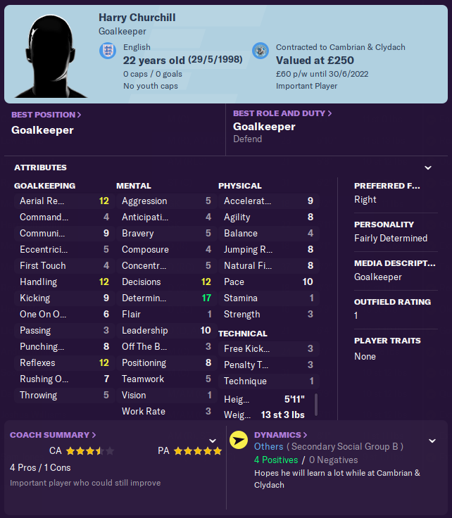 Despite having several players on my radar, I only managed to bring through one new signing in January. Londoner Scott Tomlinson is an experienced and creative midfielder with plenty of stamina who last played at Briton Ferry.