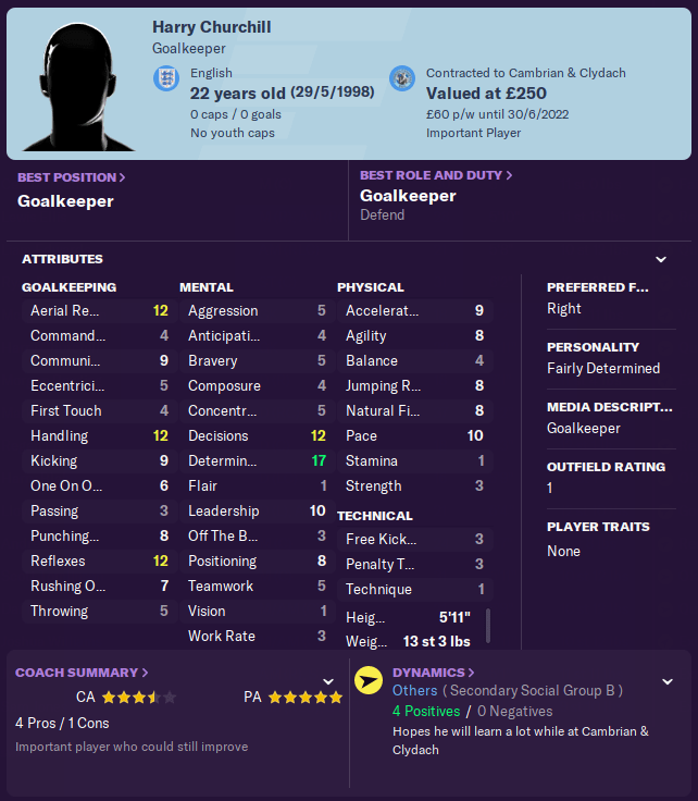 Oi, Harry Churchill! You have good reflexes, you can catch a ball, and you’re a young man with plenty of room to develop! Would YOU like to be our new goalkeeper? “Ohhhh yes!”