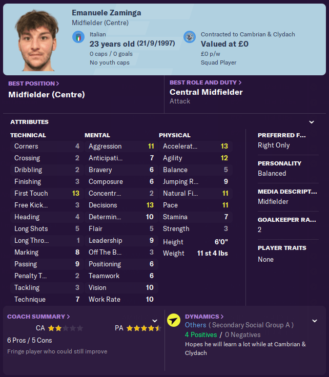 This is Emanuele Zaminga – an athletic Italian stallion who has an impressive first touch, and better passing ability than most of our other midfielders (which isn’t saying a lot). Zaminga briefly played for Bangor City last year, but his future surely lies beyond Welsh football.