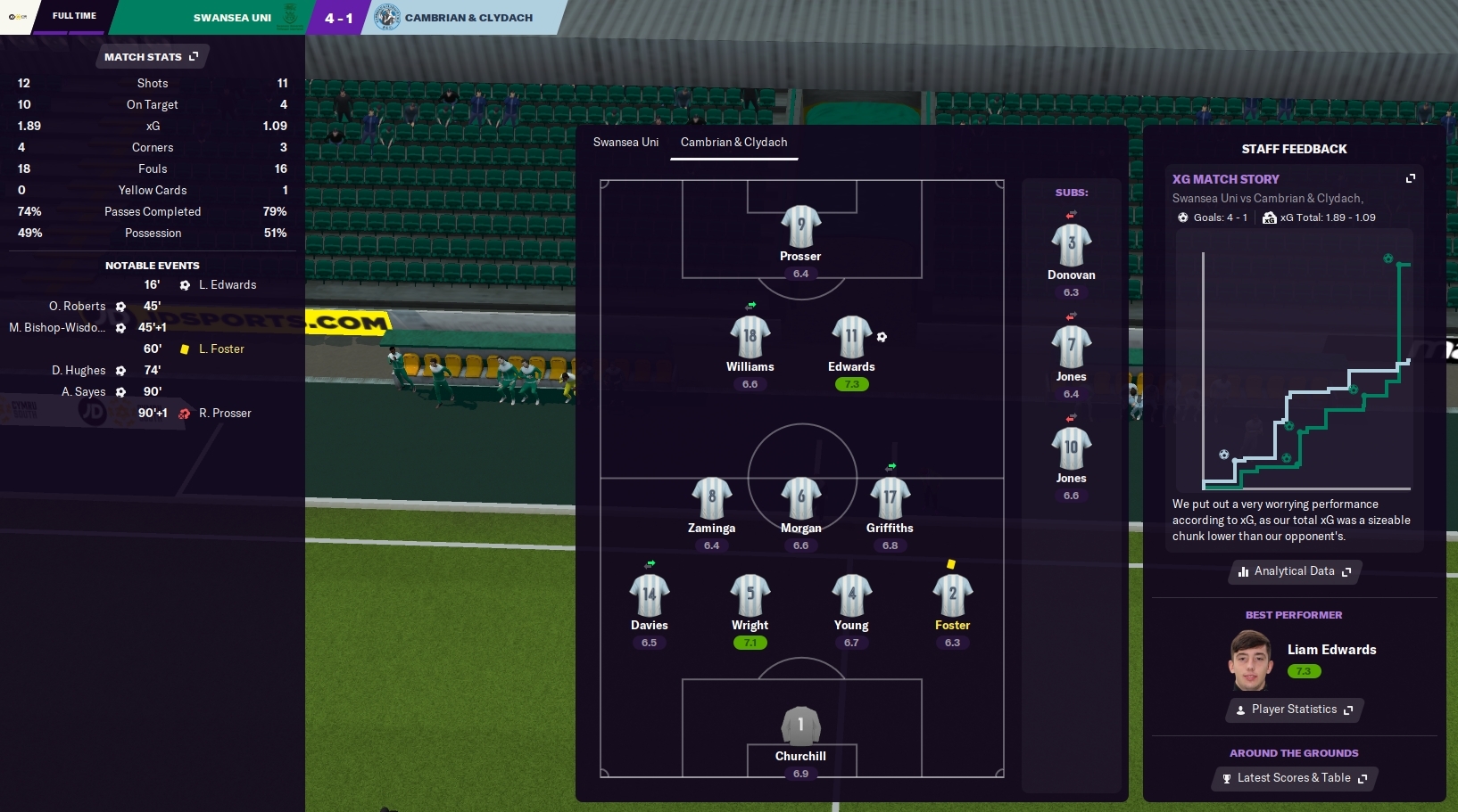 Glancing towards attacking midfielder Liam Edwards, I said, “At least you’ve shown today that we’re not just a one-man team! I thought you were great again, Liam, but your back must be hurting from all the times you’ve carried us!