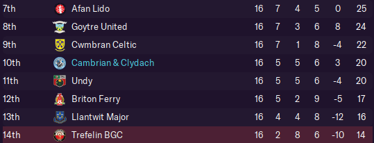 And so we finished a dreadful month sitting 8th in the Cymru South. Had we held onto all those 1-0 leads we had in February, we would have moved up to… well, still 8th, but we would have been much closer to securing our survival!